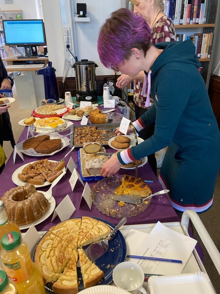 After a long dry spell of no Book and Bake Sales because of Corona, the library was full again with those wishing to buy bargain books and taste homemade cakes. As a bonus, old friends were seen again and new friends were made. The cakes were sold out and the book room has fewer books - we don't think it will ever be empty! See you again in the fall for another wonderful Book and Bake Sale.