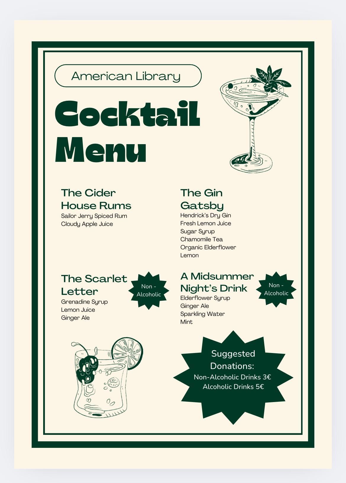 The American Library in Karlsruhe participated in the "Nacht der Bibliotheken" with a Reading Party. Our guests grabbed a cocktail or mocktail, found something to read, found a comfy place to sit and read! After 30 minutes, drinks could be refreshed, legs could be stretched and then we had another 30 minutes of quiet reading. Most people find it hard to set aside time to read, so we are very glad we could fill this need. Another reading party is coming soon!